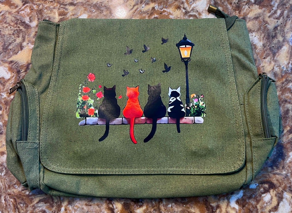 Cross Body Bags, Backpacks & Messenger Bags - Fun, Colorful and of course CATS! - is backordered and will ship as soon as it is back in stock.