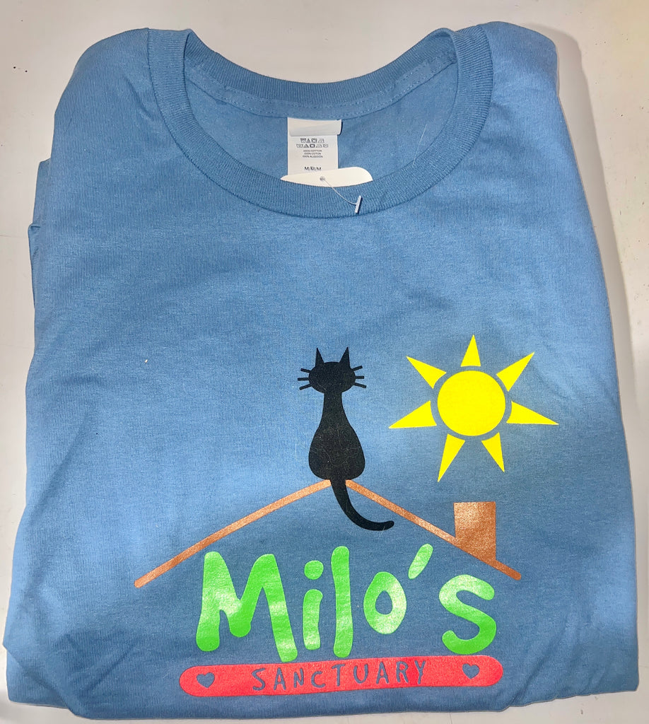 This is the hippest shirt in town! It's cool, comfortable, can be worn in any weather and it sports the beautiful Milo's Sanctuary logo!
