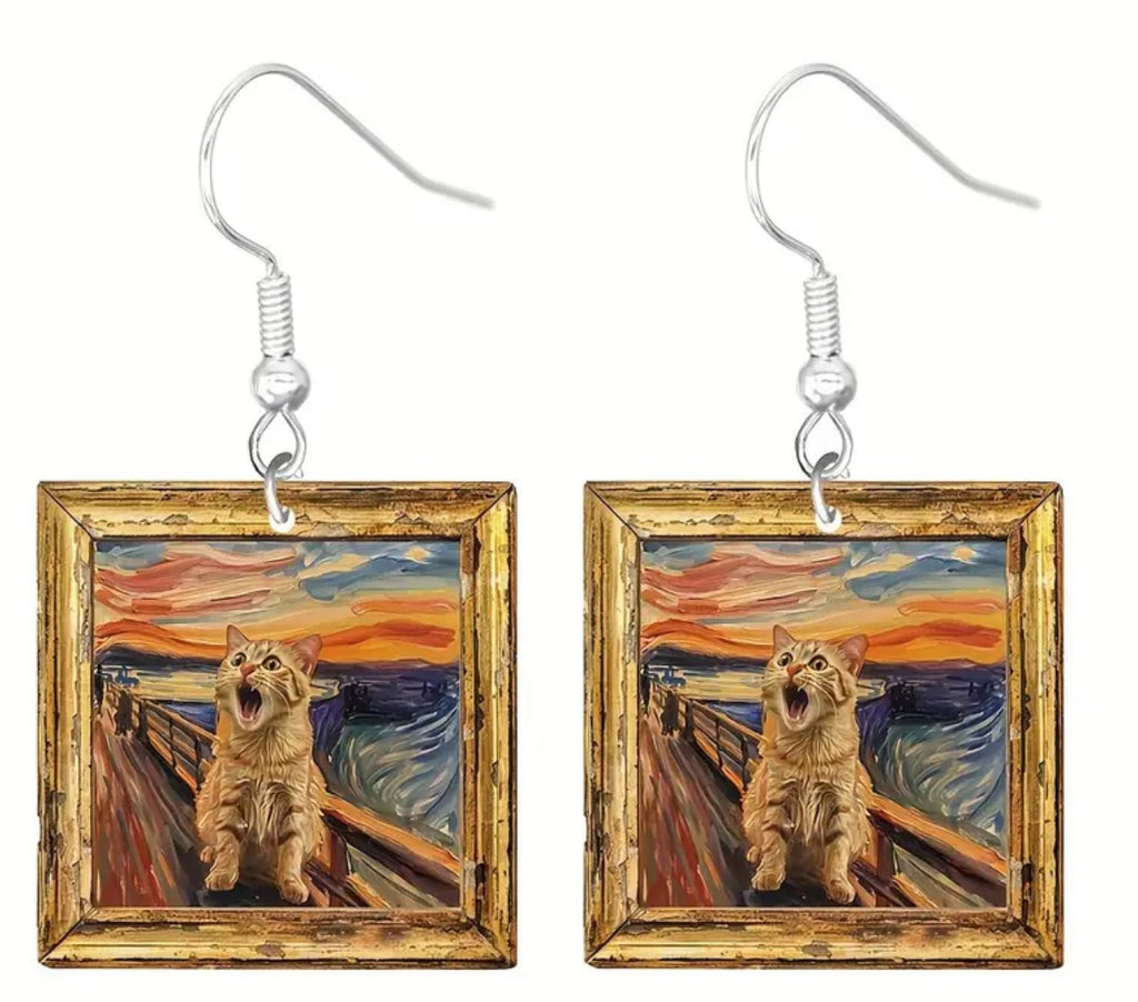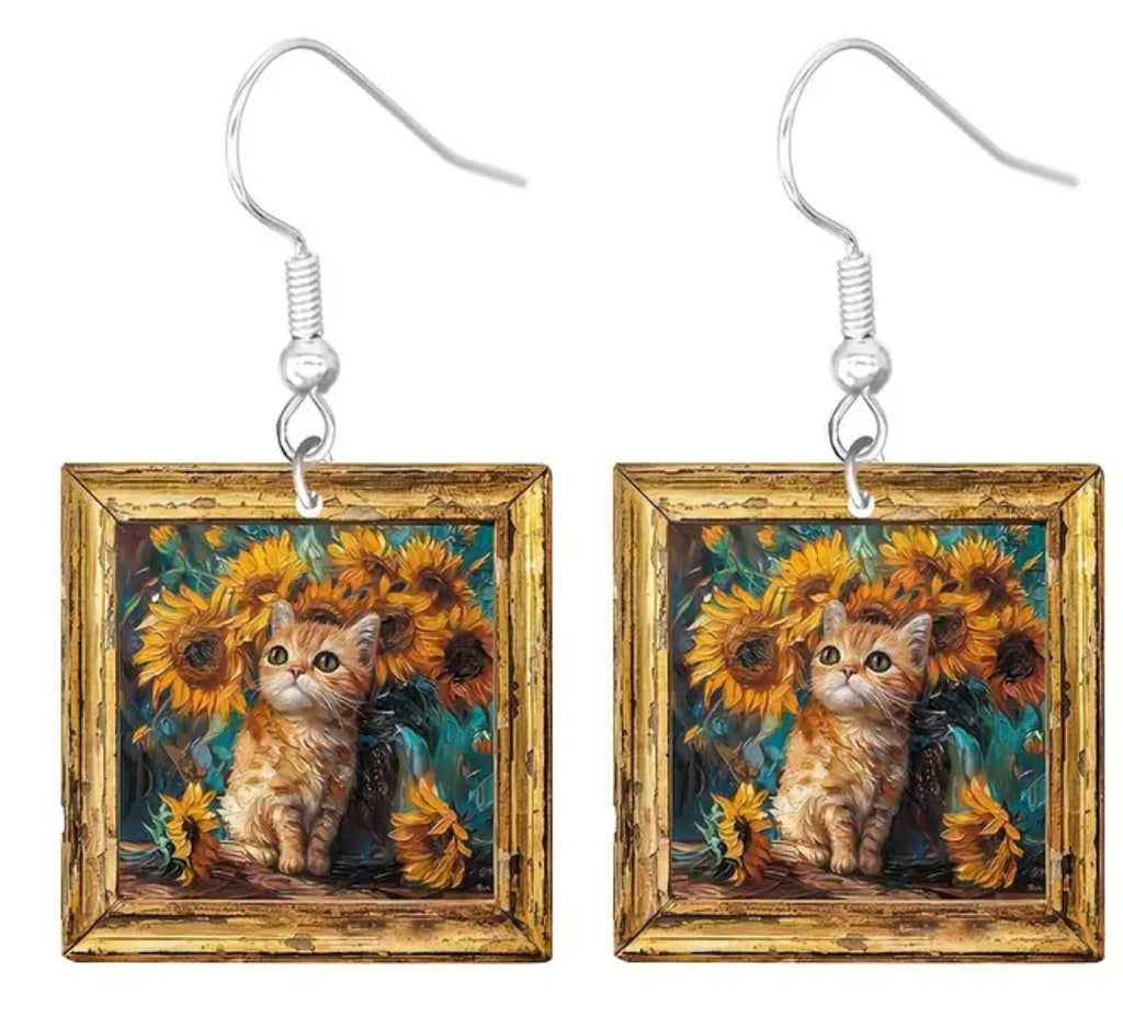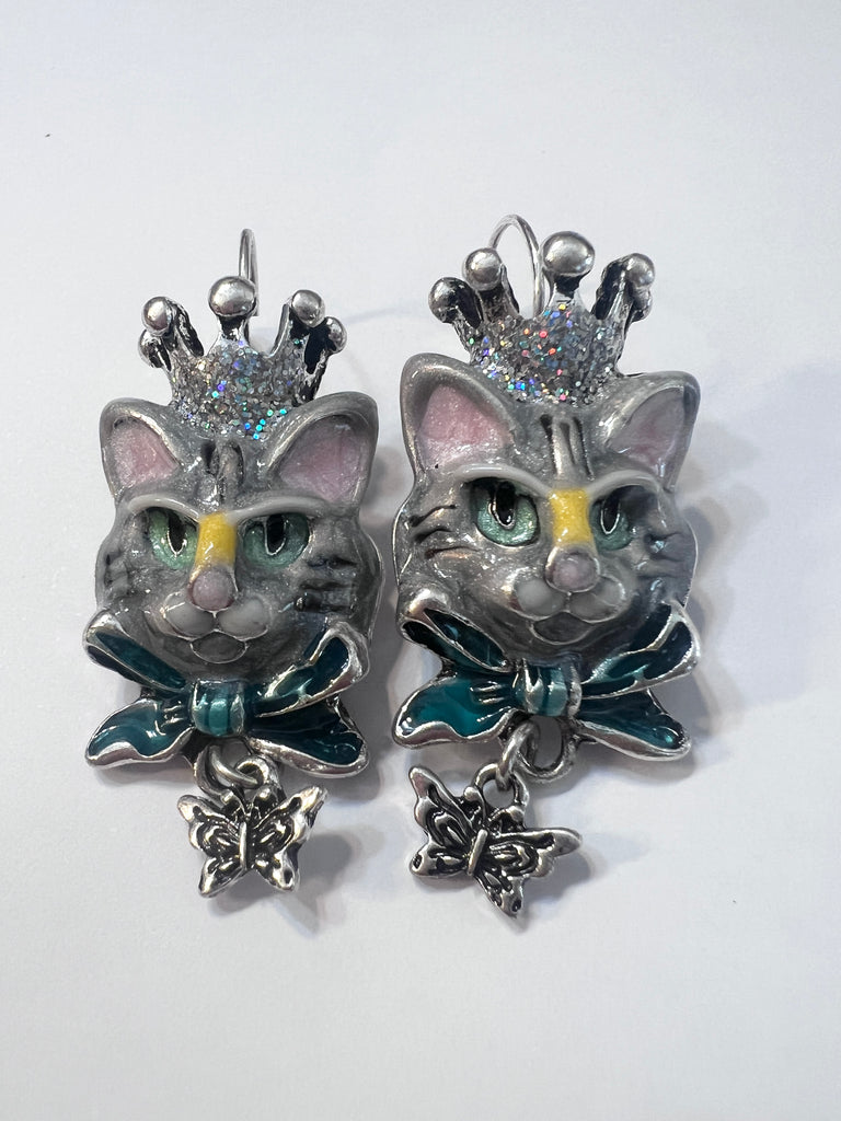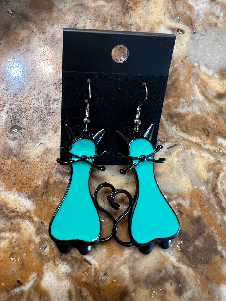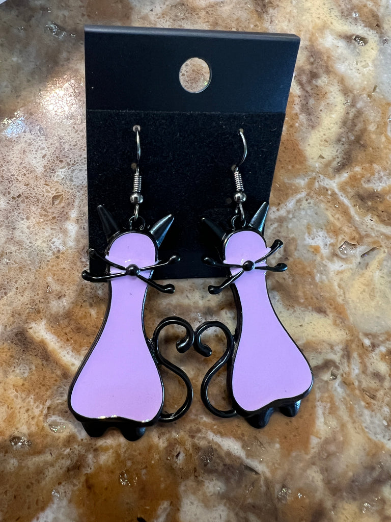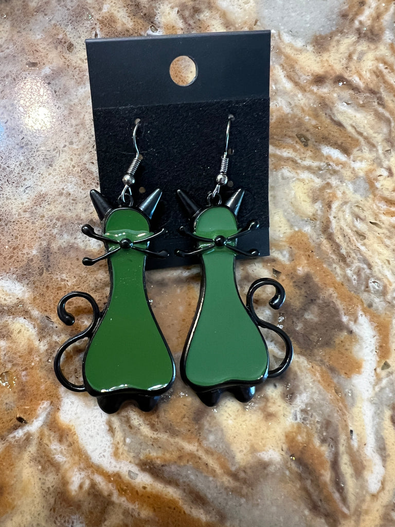 105. Black Cat on Yellow C-Moon w/Black Dangles