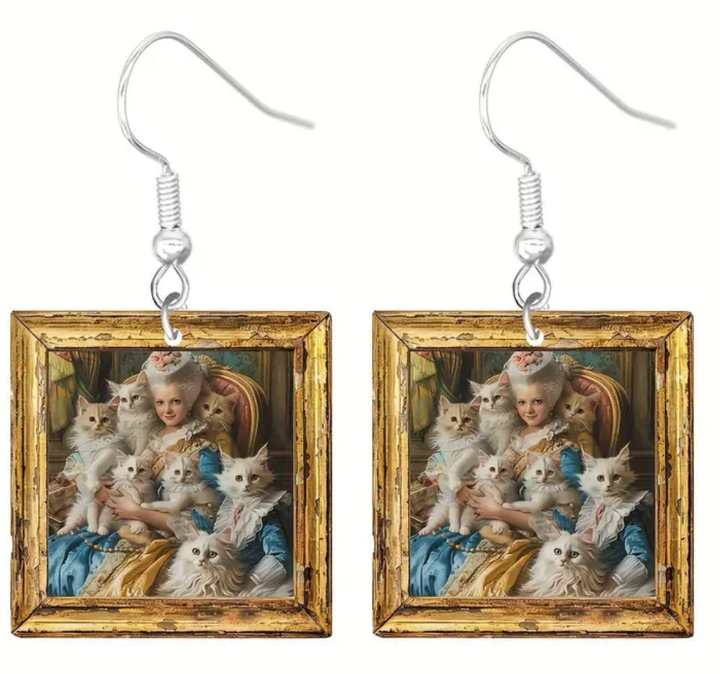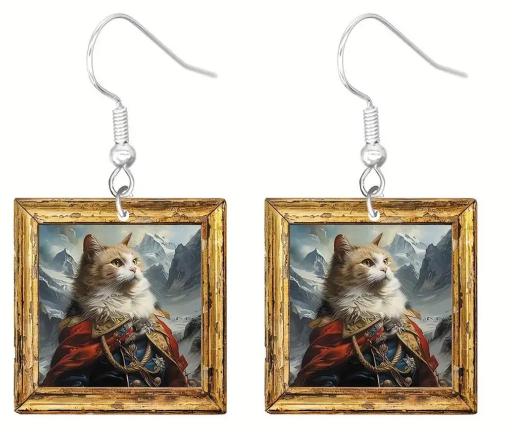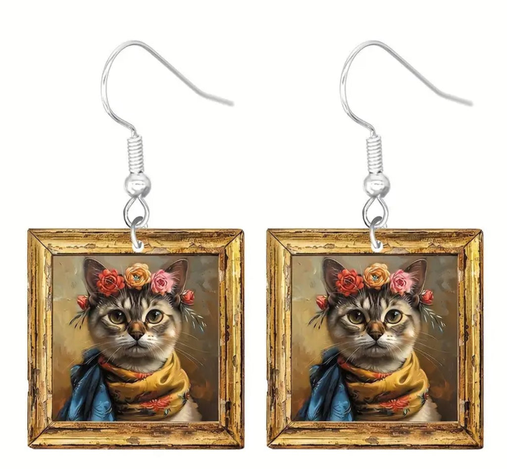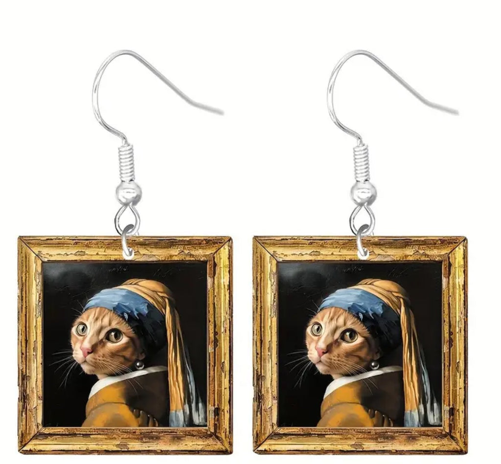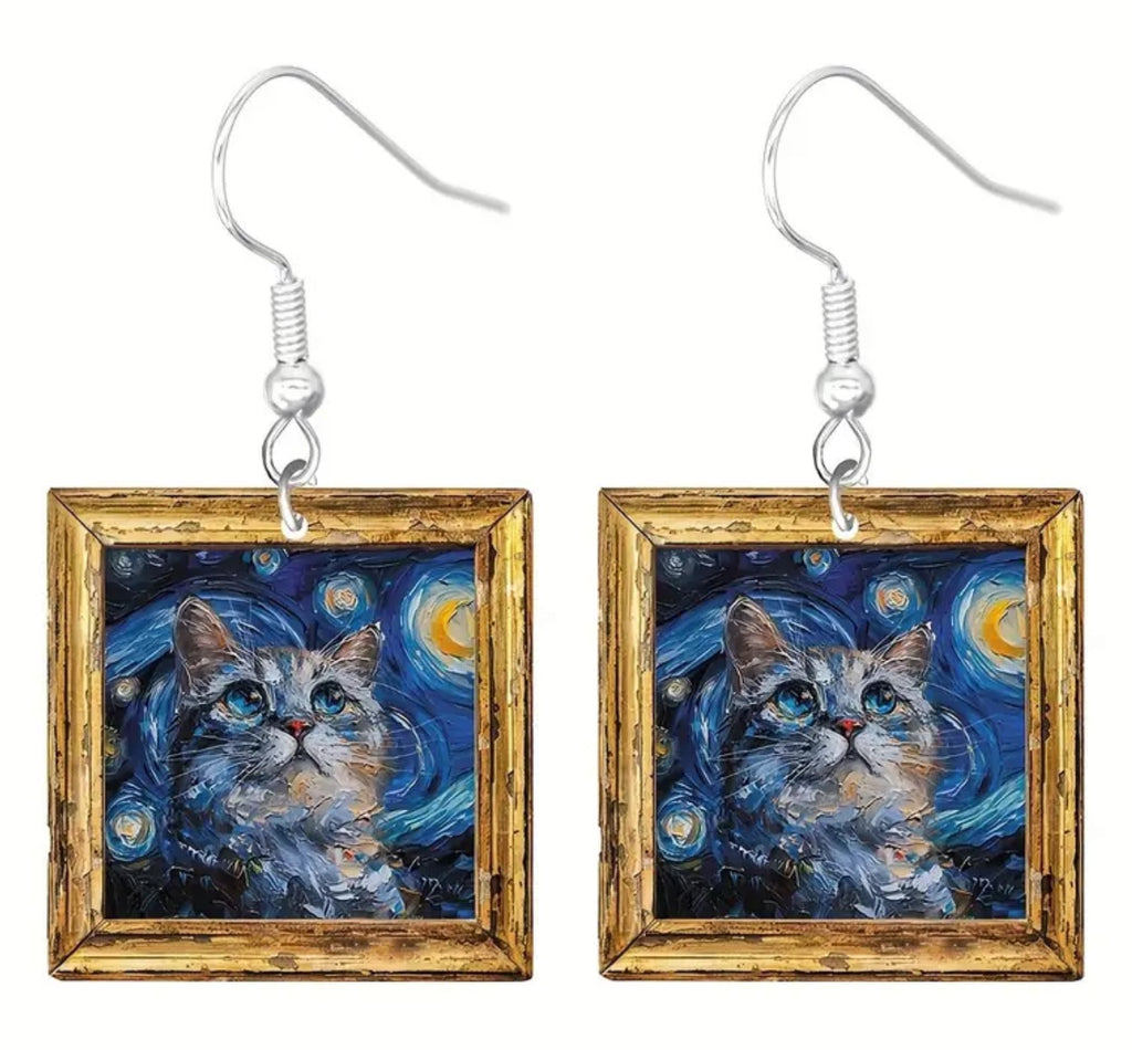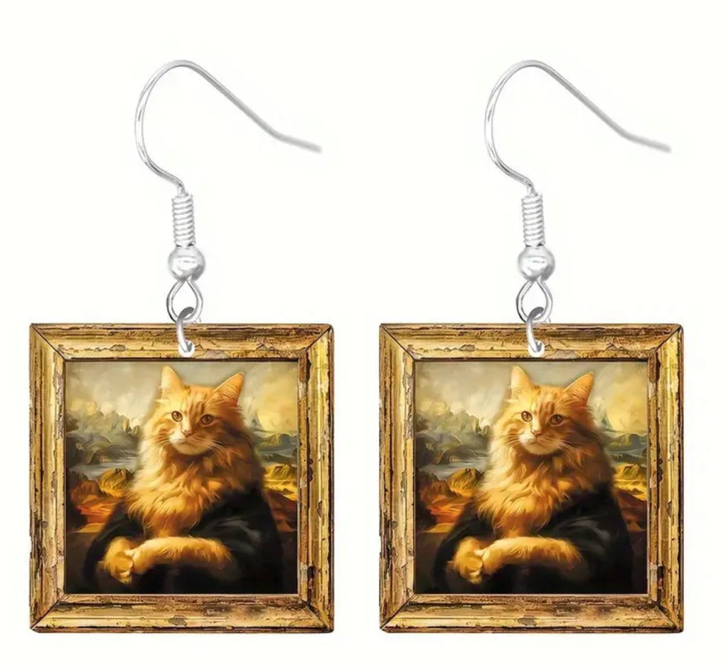 105. Black Cat on Yellow C-Moon w/Black Dangles