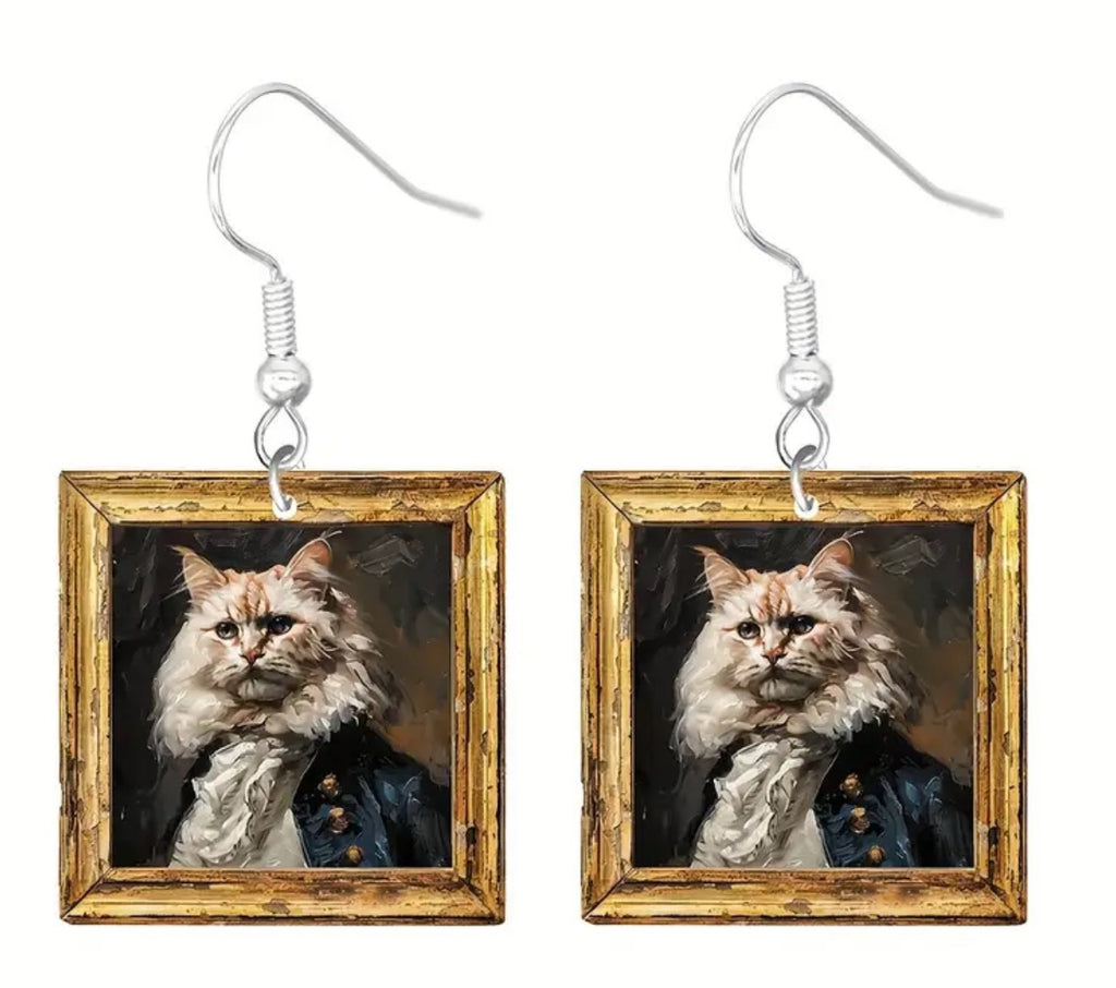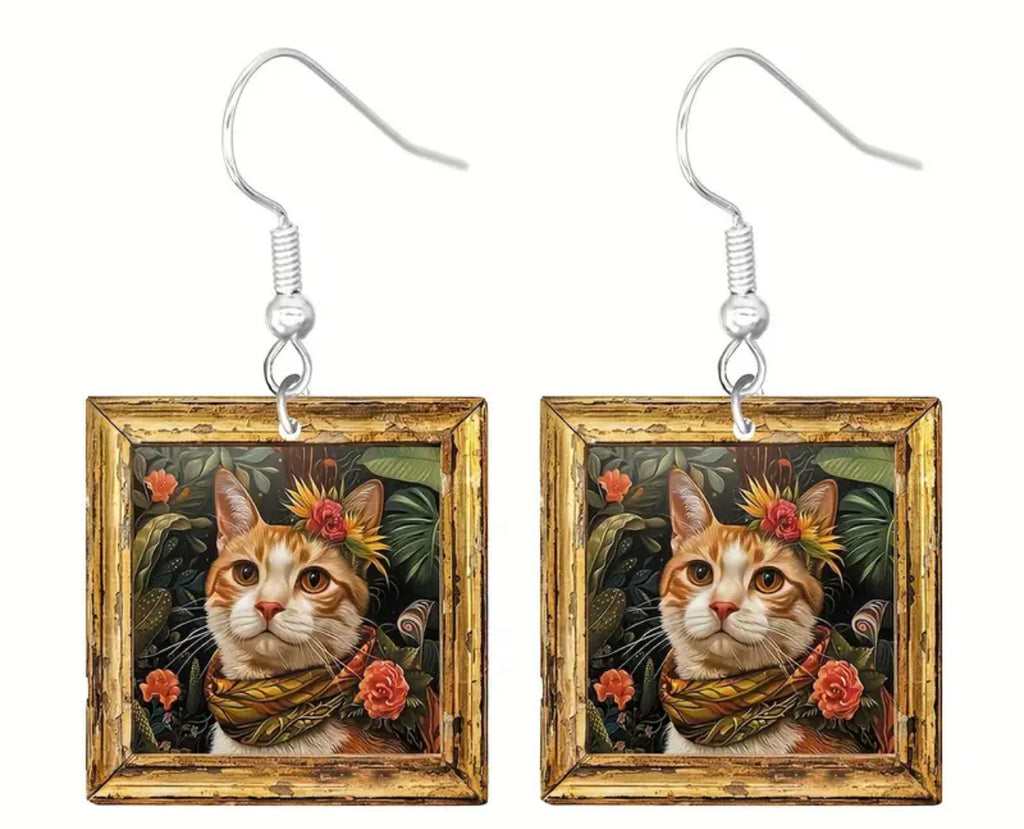 107. Black Cat with Gold Eyes - Glass Bar Earrings