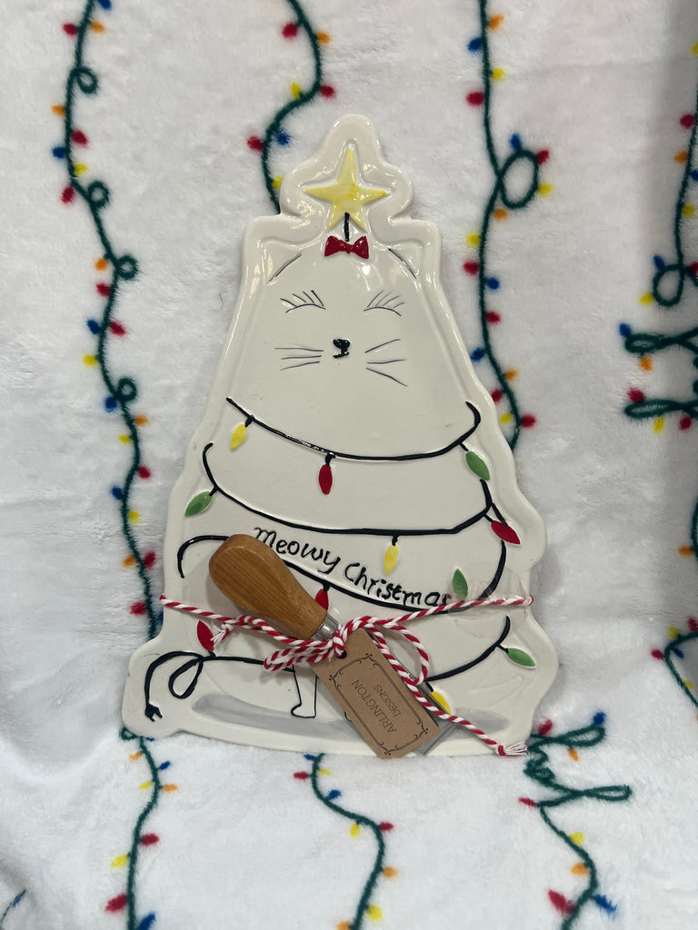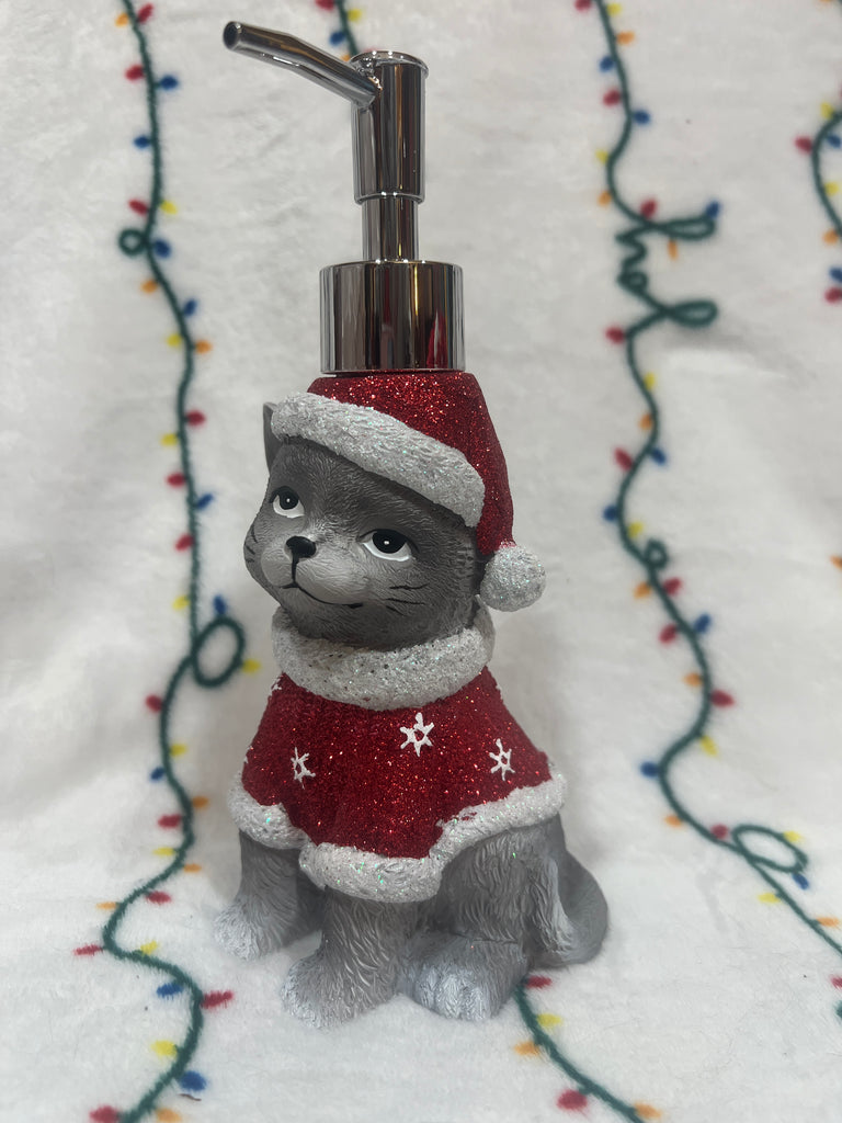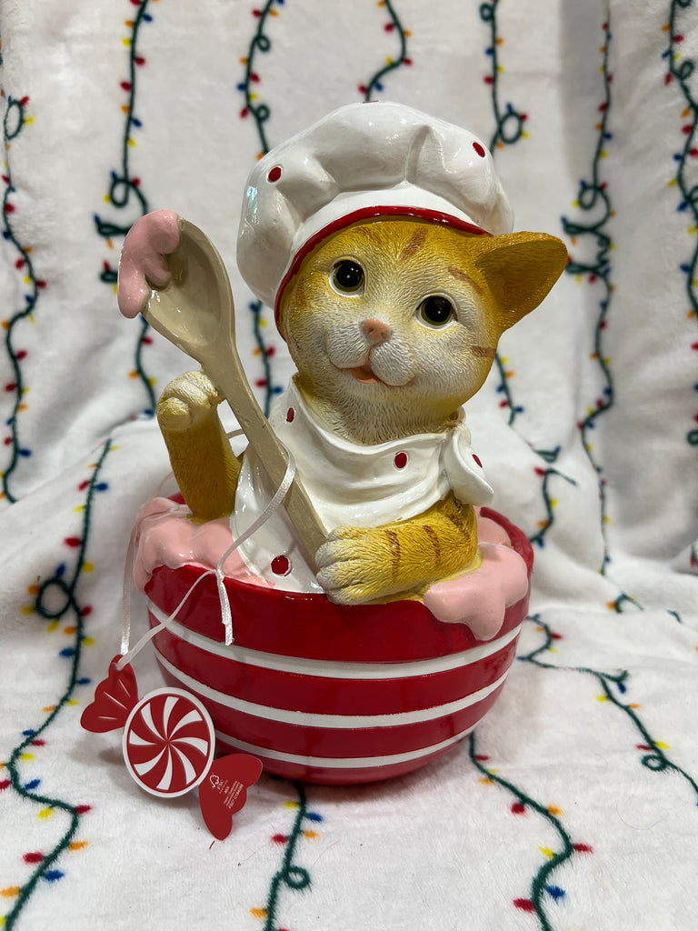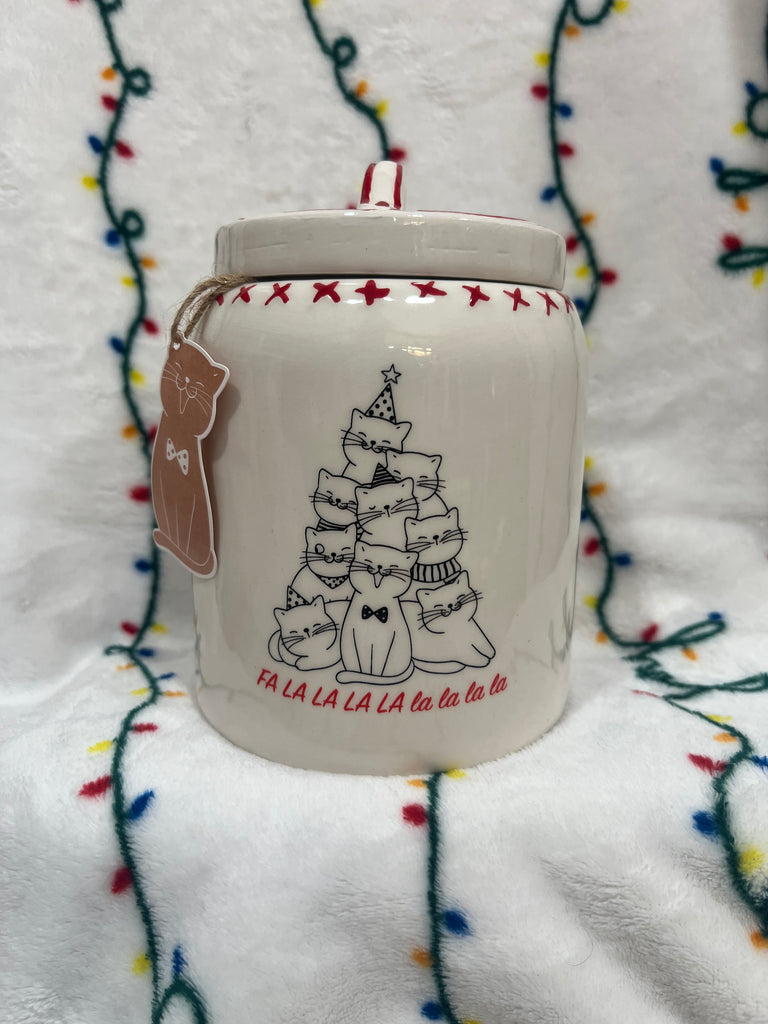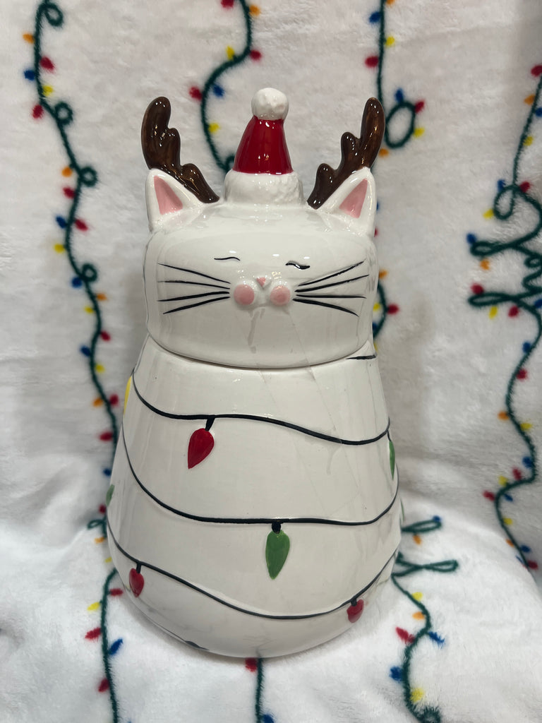 Cat Cookie Jar w/ Santa Hat & Christmas Lights
