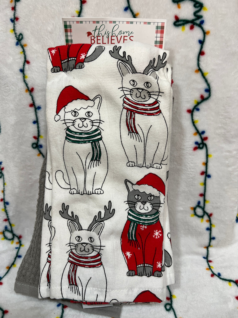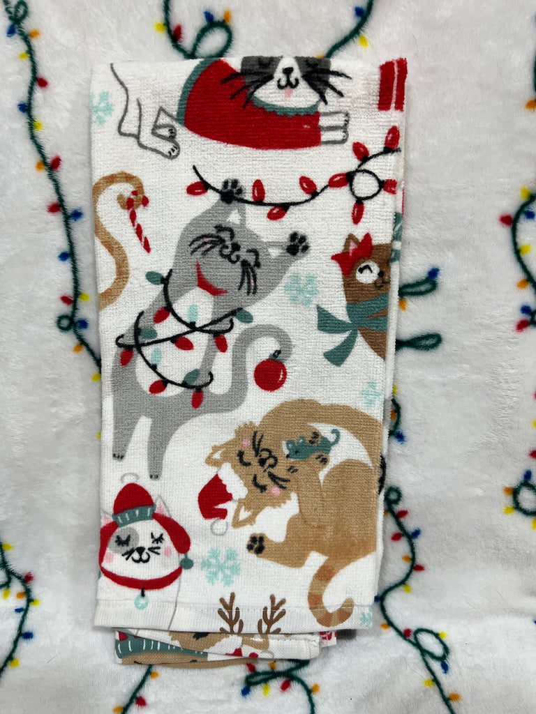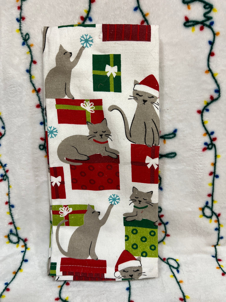 Cats Dressed For Christmas- 4 Dish towels & 4 Hand Towels