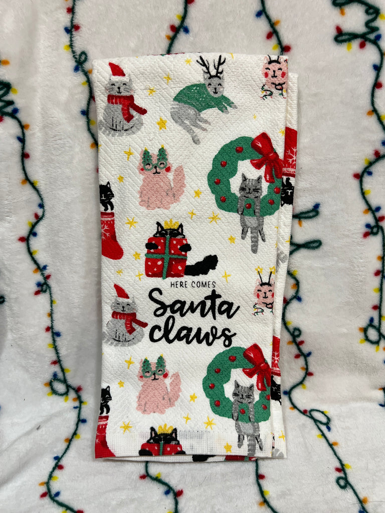 Here Comes Santa Claws Kitchen Towel Set of 2
