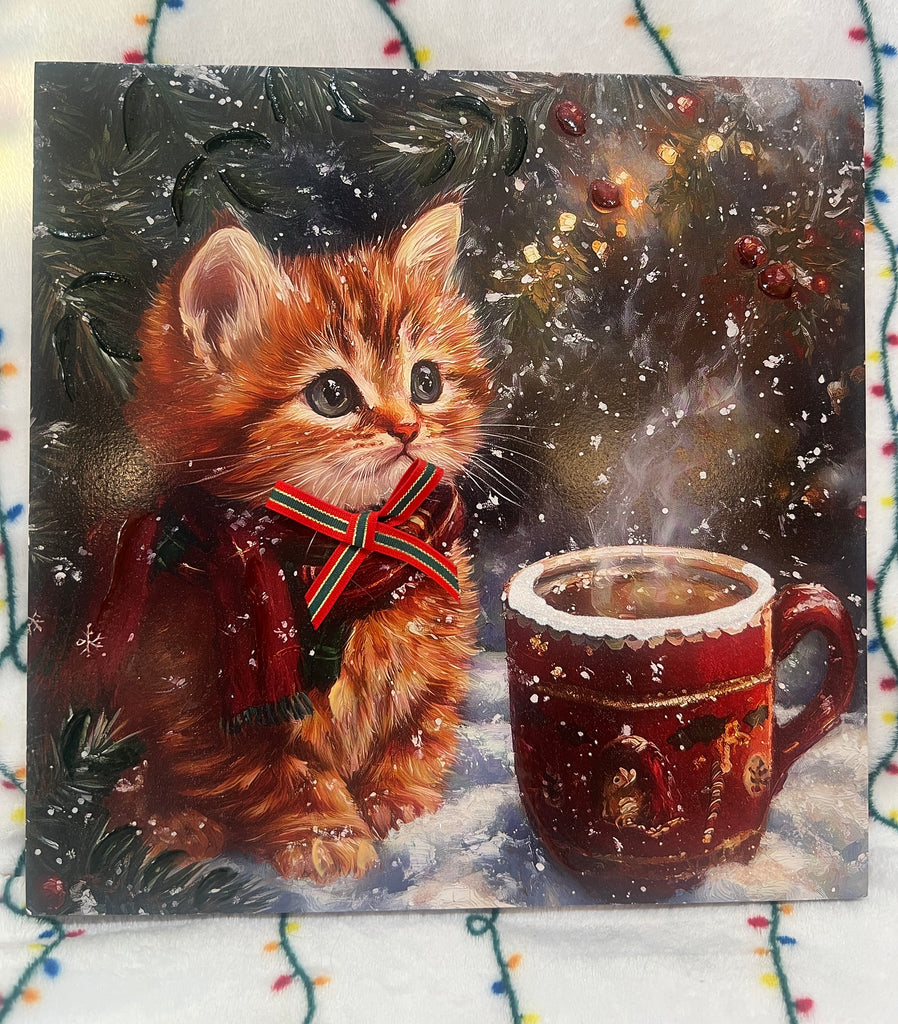 Orange Cat w/ Hot Chocolate & Bow Painting